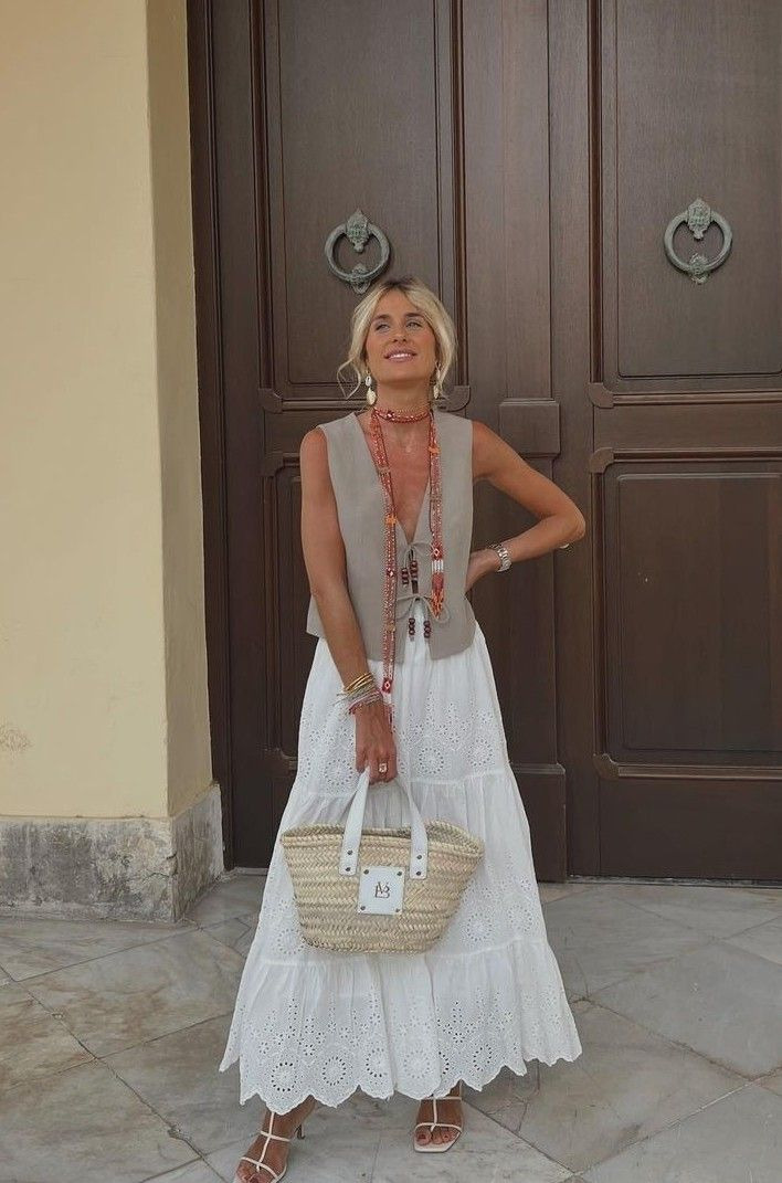 더운 여름에는 시원하게 소매가 없는 베스트 디자인도 캉캉스커트와 조합이 좋아요.