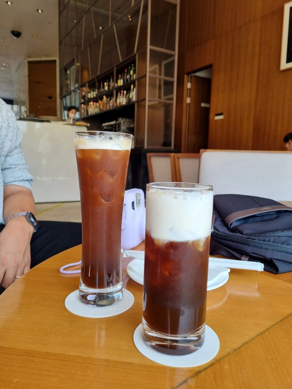 로비 라운지 신라코트에 들어가서 커피 마시기로 했어요.