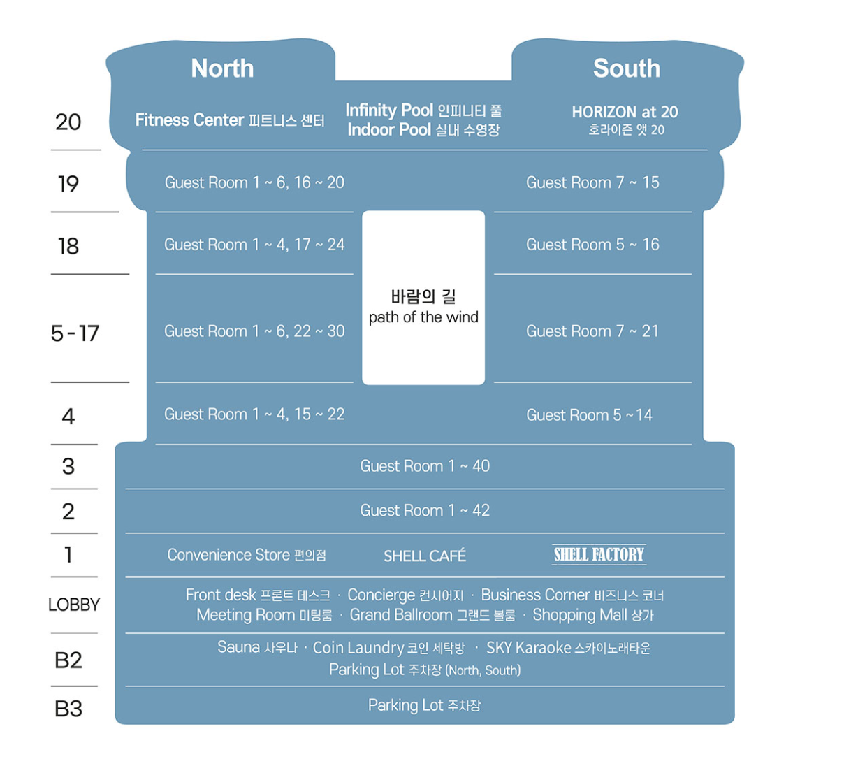 스카이베이 시설을 한눈에 볼 수 있는